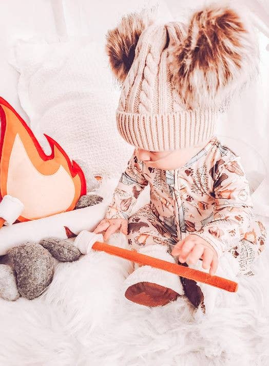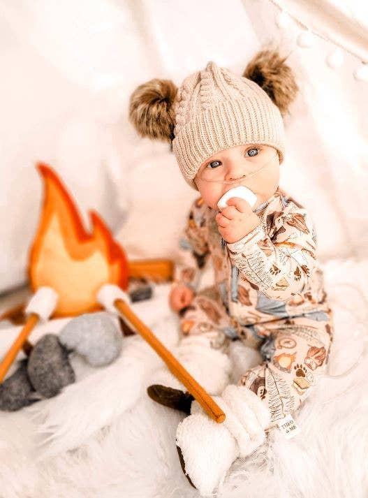 BRAND - Theo & Me Attention all adventure seekers! Get ready to rock this gender-neutral print, perfect for summer camping! Featuring earthy tones with a pop of teal, this infant, newborn, and toddler sleeper is a must-have for those who love wildlife, camping, s'mores, and all things outdoors. It's bold and colorful prints of bears, trees, and bonfires are eye-catching and ideal for boutiques in wilderness settings, near mountains, or outdoor events. With fold-over cuffs and double zippers, this sleeper is perfect for the little ones who won't let anything hold them back. Made of soft cotton spandex material, this sleeper is the perfect combination of comfort and style.