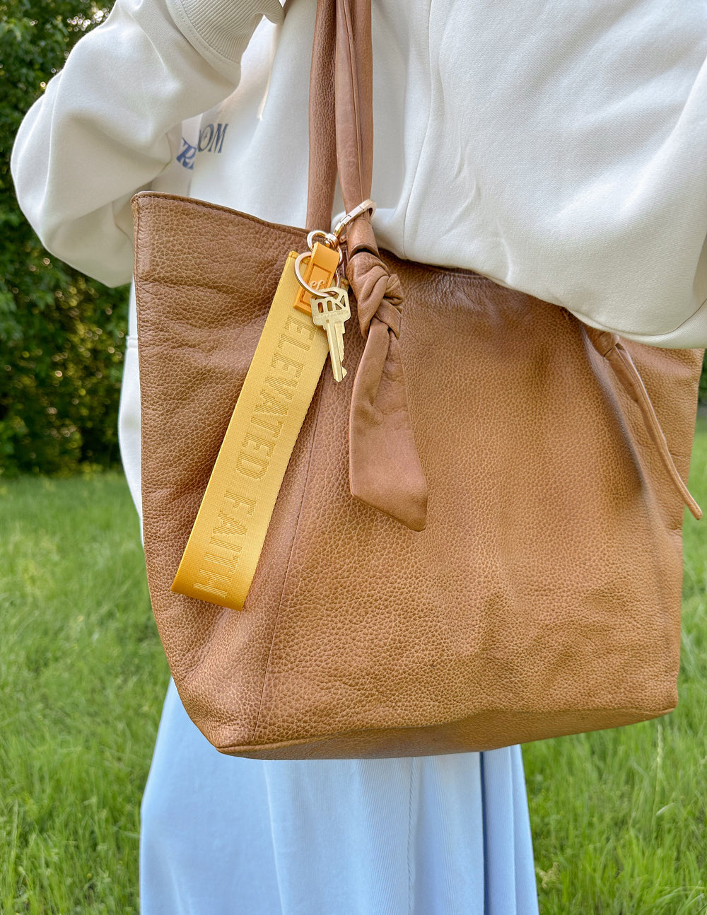 Make a statement with our Yellow Oversized Logo Keychain—bold and built to stand out. With its durable design and sporty silhouette, it’s the perfect pop of personality for your keys or bag. Carry your faith with you, wherever you go.